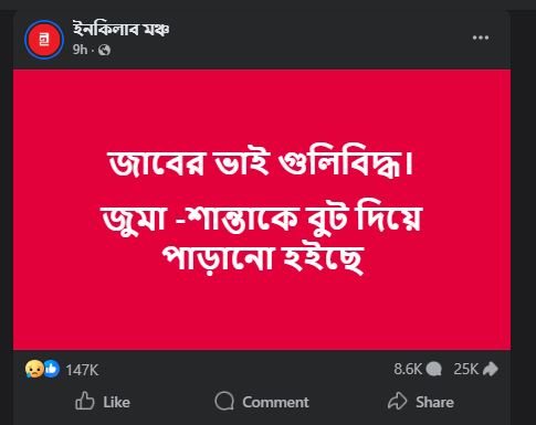 ইনকিলাব মঞ্চের পেজ থেকে গুলিবিদ্ধের দাবি