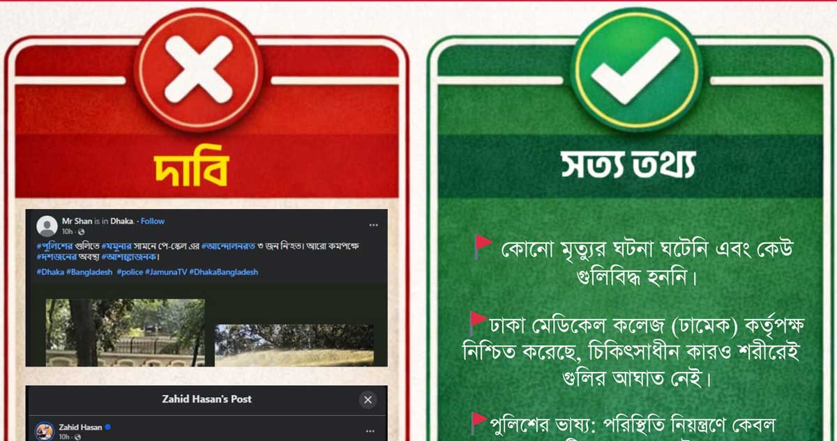 ‘যমুনা’র সামনে আন্দোলনে পুলিশের গুলিতে বা সংঘর্ষে একাধিক ব্যক্তি নিহত হয়েছেন বলে গুজব ছড়ানো হচ্ছে’
