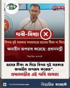 তবে ফ্যাক্ট-চেক জোন নানা তথ্য উপাত্ত বিশ্লেষণ করে নিশ্চিত করেছে প্রধানমন্ত্রীর এই দাবি সত্য নয়।